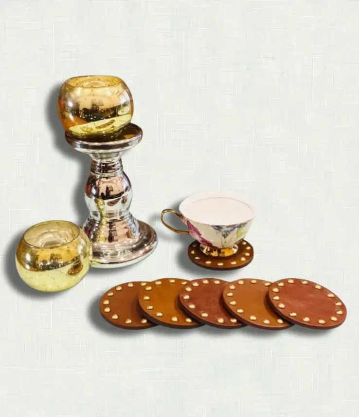 Our exquisite Brown Coaster with Studs is crafted to elevate your corporate gifting experience. Made from premium leatherette, this sophisticated coaster adds a touch of elegance to any desk or conference room.